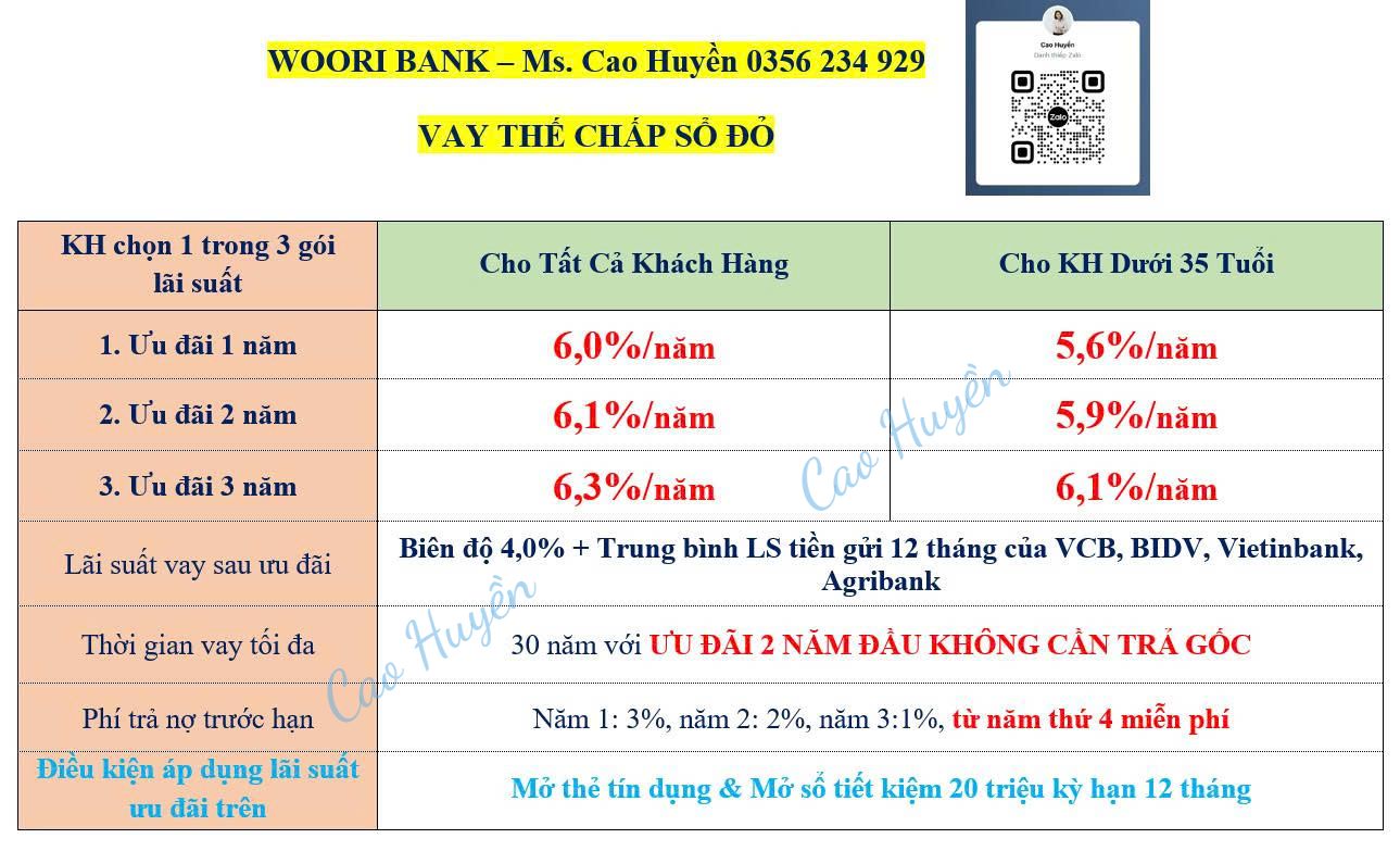 2. Lãi suất vay thế chấp sổ đỏ Woori Bank tháng 11/2025